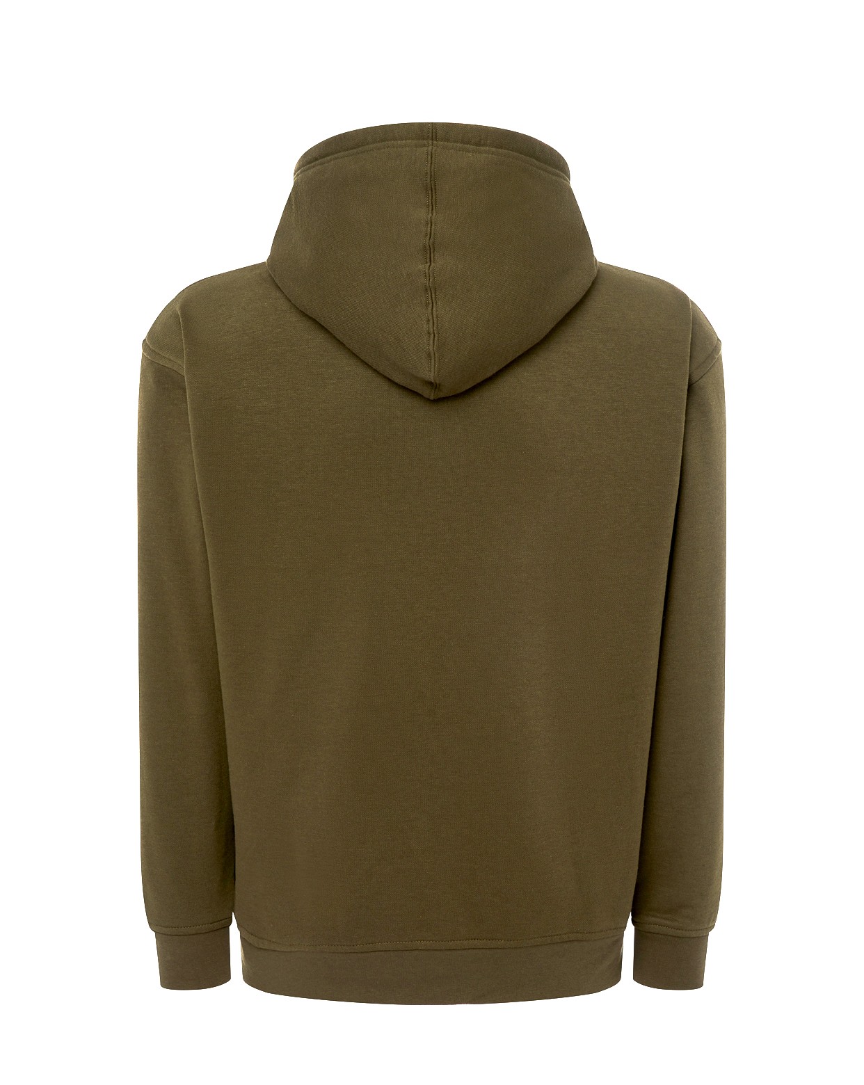 Model posiada kaptur ze sznurkami w kolorze bluzy oraz kryty zamek na całej długości, co ułatwia zakładanie i chroni przed wiatrem. Naszyta kieszeń typu kangur jest praktyczna i wygodna, idealna do przechowywania drobiazgów lub ogrzania dłoni. Elastyczne ściągacze 2x1 przy rękawach i u dołu bluzy gwarantują idealne dopasowanie, a łatwo usuwalna metka umożliwia personalizację — bluza świetnie sprawdzi się jako odzież firmowa lub reklamowa.