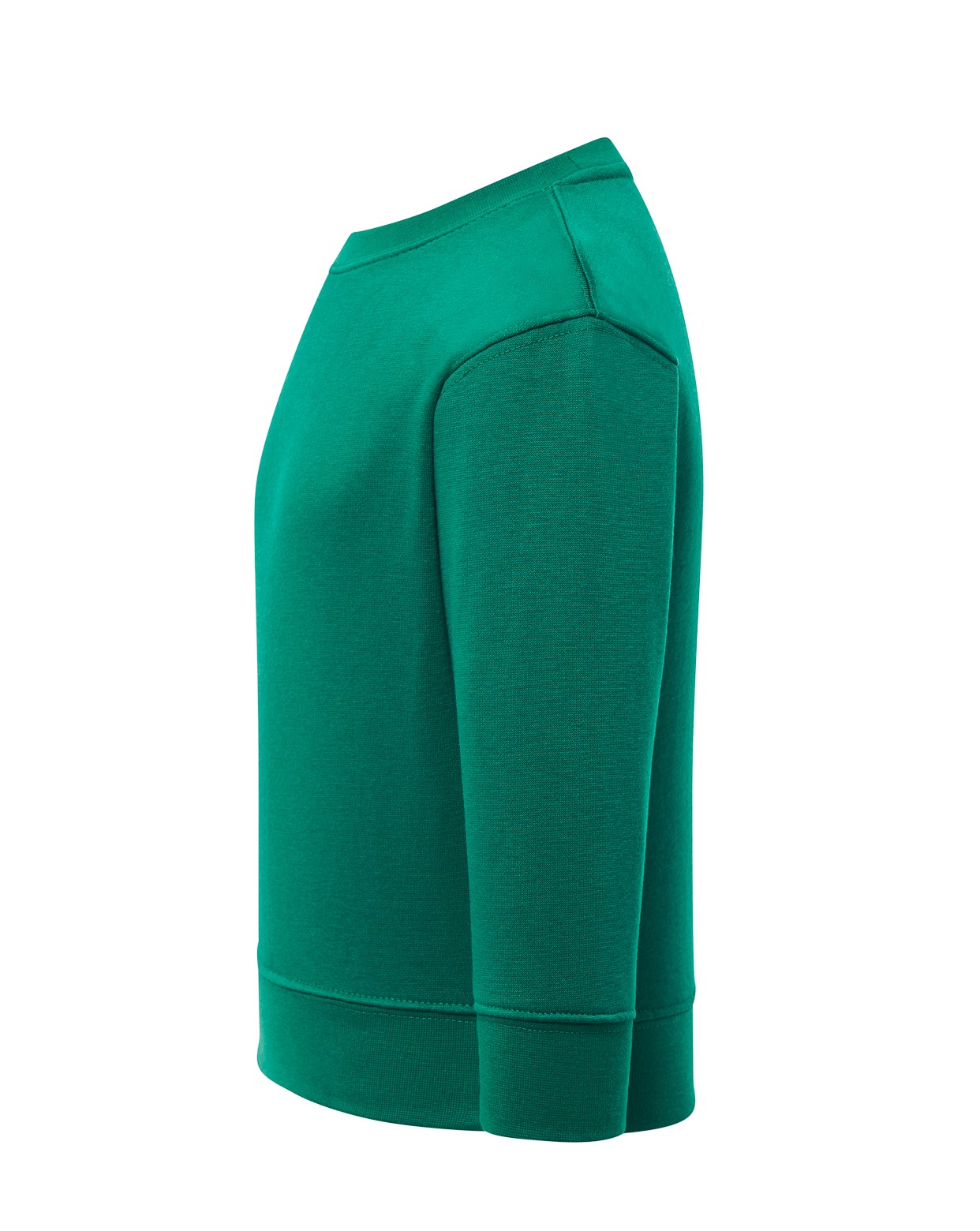 Model z okrągłym dekoltem i elastycznymi ściągaczami 2x1 przy rękawach oraz u dołu bluzy gwarantuje doskonałe dopasowanie do sylwetki i komfort noszenia. Podwójne przeszycia zwiększają trwałość, a łatwo usuwalna metka ułatwia personalizację.