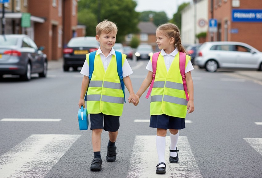 zwiększając widoczność sylwetki dziecka dla kierowców i innych uczestników ruchu.