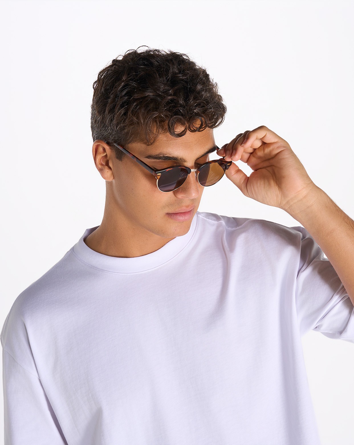 Nowoczesna koszulka oversize w kroju boxy, charakteryzująca się krótszą długością i szeroką sylwetką. Wykonana z wysokiej jakości bawełny o podwyższonej gramaturze, idealnie wpisuje się w aktualne trendy streetwearowe. Świetny wybór do codziennych stylizacji oraz kolekcji modowych.