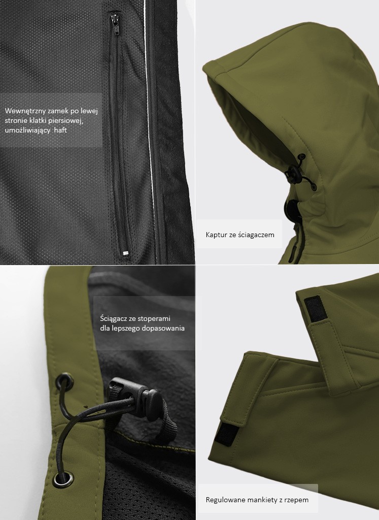 Nowoczesna i funkcjonalna kurtka typu softshell stworzona z myślą o komforcie i ochronie. Wykonana z trójwarstwowego materiału (94% poliester / 6% elastan) o gramaturze 340 g/m², łączy doskonałą wodoodporność (8000 mm) z oddychalnością (1000 g/m²/24 h), dzięki czemu zapewnia skuteczną ochronę przed deszczem i wiatrem, zachowując komfort użytkowania.