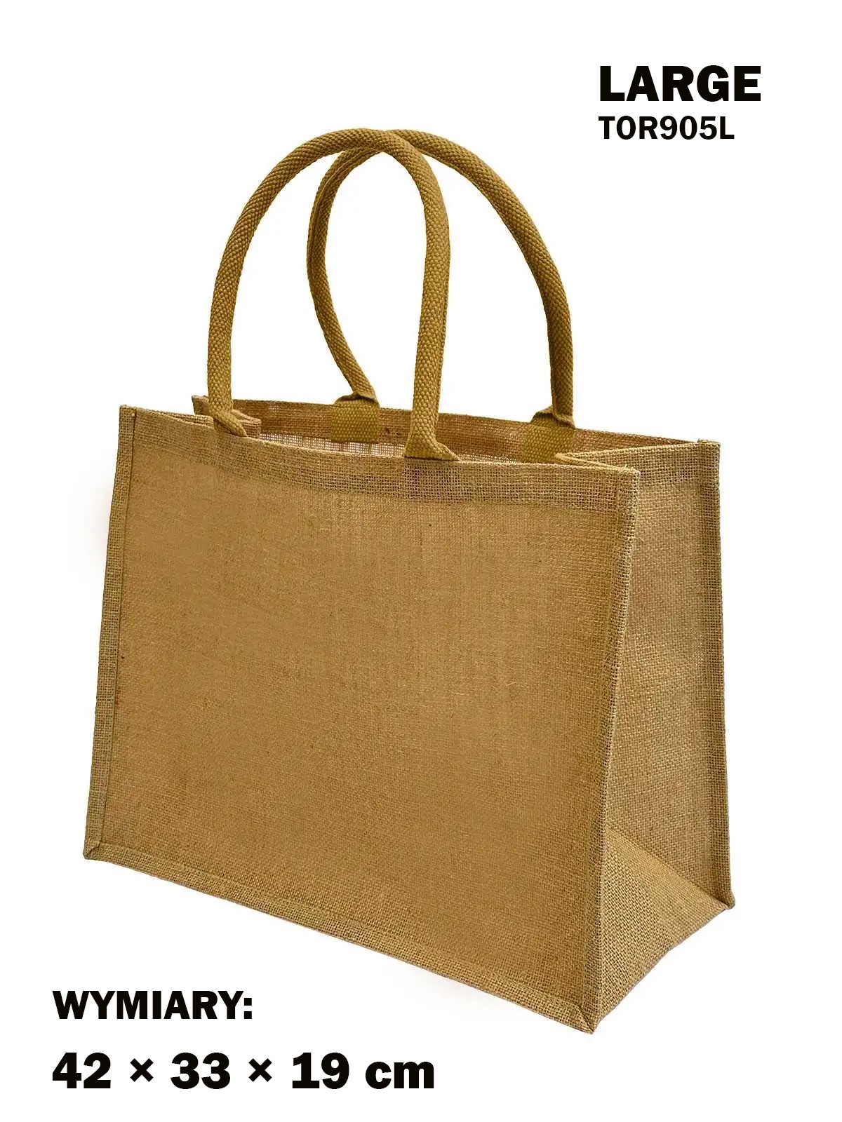 Stylowa i ekologiczna torba wielokrotnego użytku wykonana z naturalnej juty. Posiada laminowane wnętrze, które zwiększa wytrzymałość i odporność na wilgoć. Dostępna w trzech funkcjonalnych rozmiarach: Small, Medium, Large. Idealna na zakupy, na plażę oraz jako torba reklamowo - prezentowa z nadrukiem.