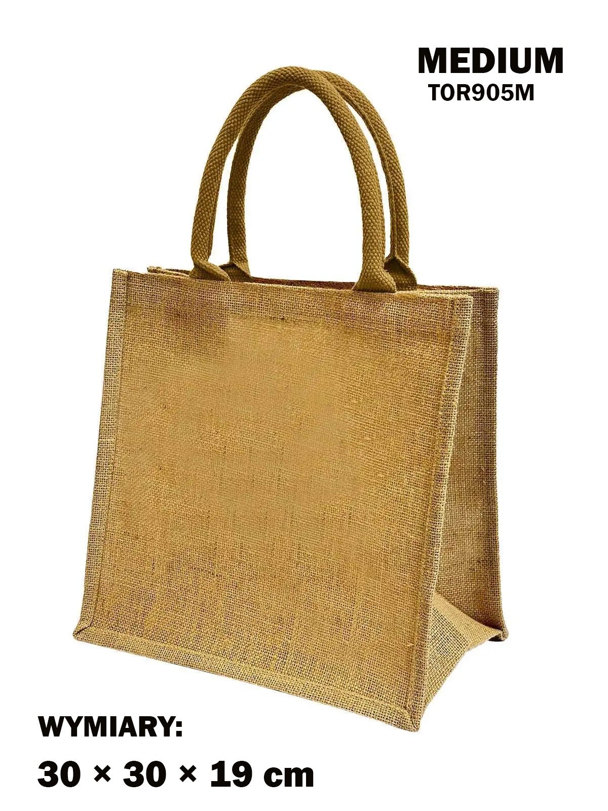 Stylowa i ekologiczna torba wielokrotnego użytku wykonana z naturalnej juty. Posiada laminowane wnętrze, które zwiększa wytrzymałość i odporność na wilgoć. Dostępna w trzech funkcjonalnych rozmiarach: Small, Medium, Large. Idealna na zakupy, na plażę oraz jako torba reklamowo - prezentowa z nadrukiem.
